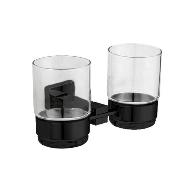 Barcelona Series - Black Finished AISI 304 Stainless Steel Double Glass For Toothbrush