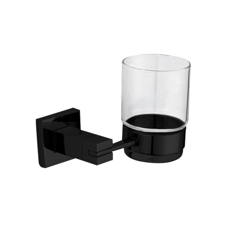 Barcelona Series - Glass For Toothbrushes With Black Finished AISI 304 Stainless Steel Support