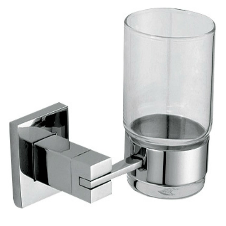 Barcelona Series Glass For Toothbrushes With Polish Finished AISI 304 Stainless Steel Support