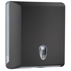 Manufactured in black and transparent ABS. Dimensions: height 300 x width 290 x depth 105 (mm). Capacity: 250 towels folded in Z or C Mounting s..