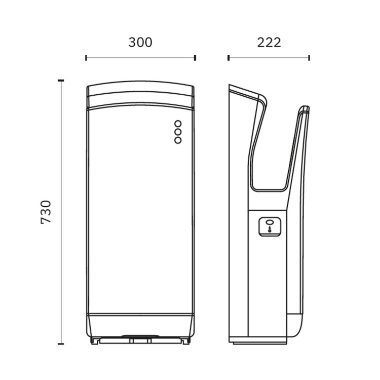| Dimensions | 730mm (H) x 300mm (W) x 222mm (D) |